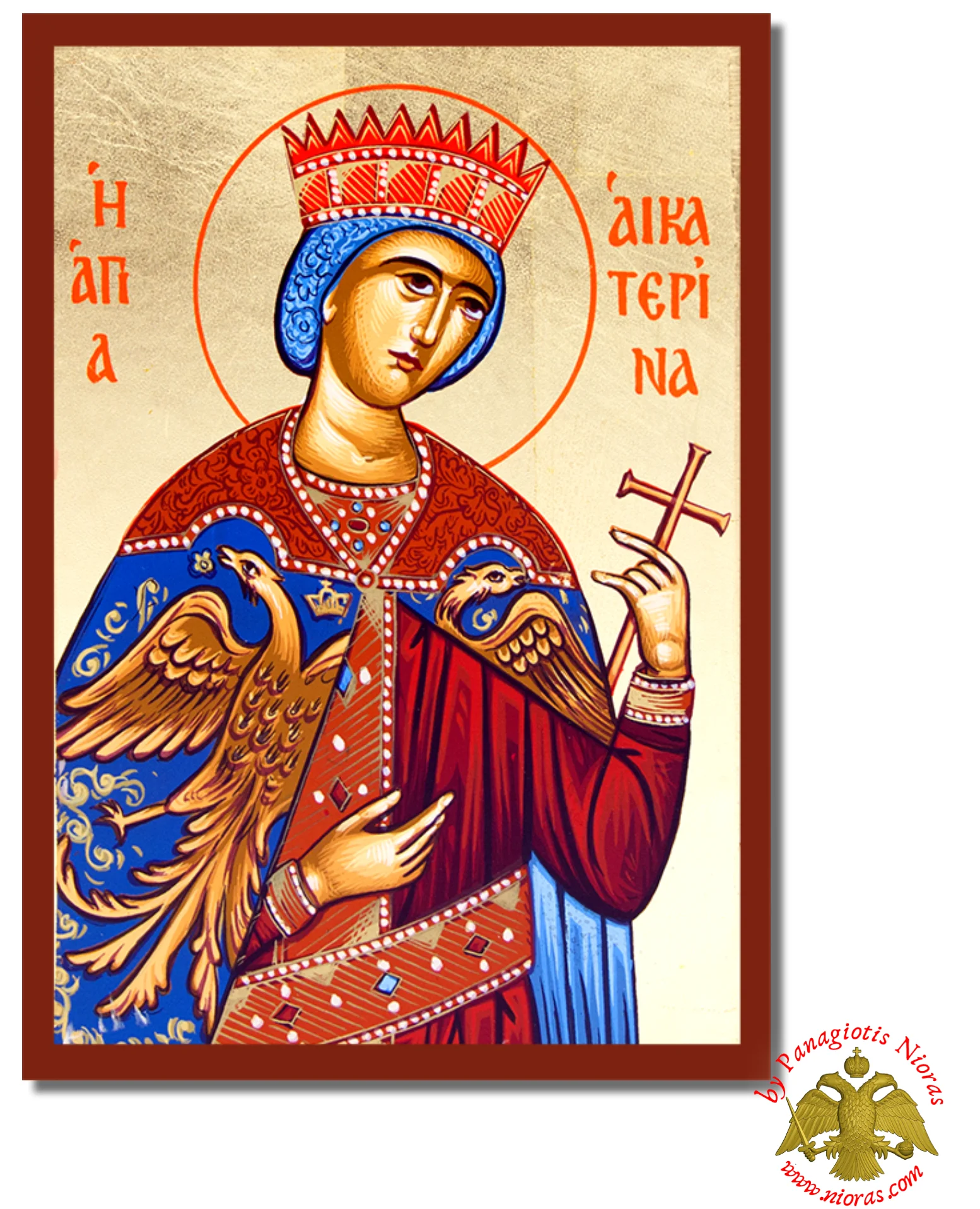 Χειροποίητη Ξύλινη Εικόνα H Aγία Αικατερίνη Σε Καμβά.