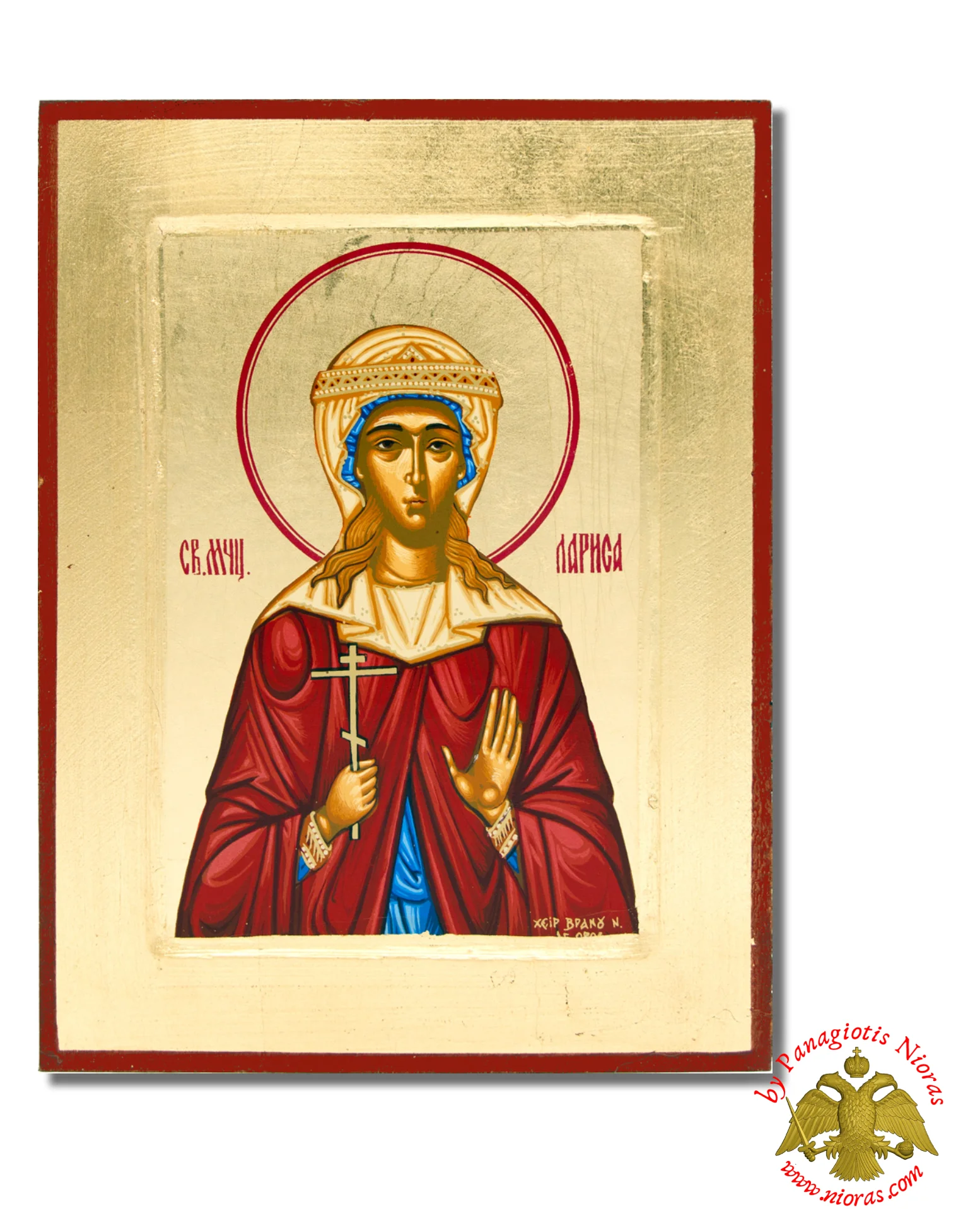 Χειροποίητη Ξύλινη Εικόνα H Aγία Λαρισία Σε Καμβά.