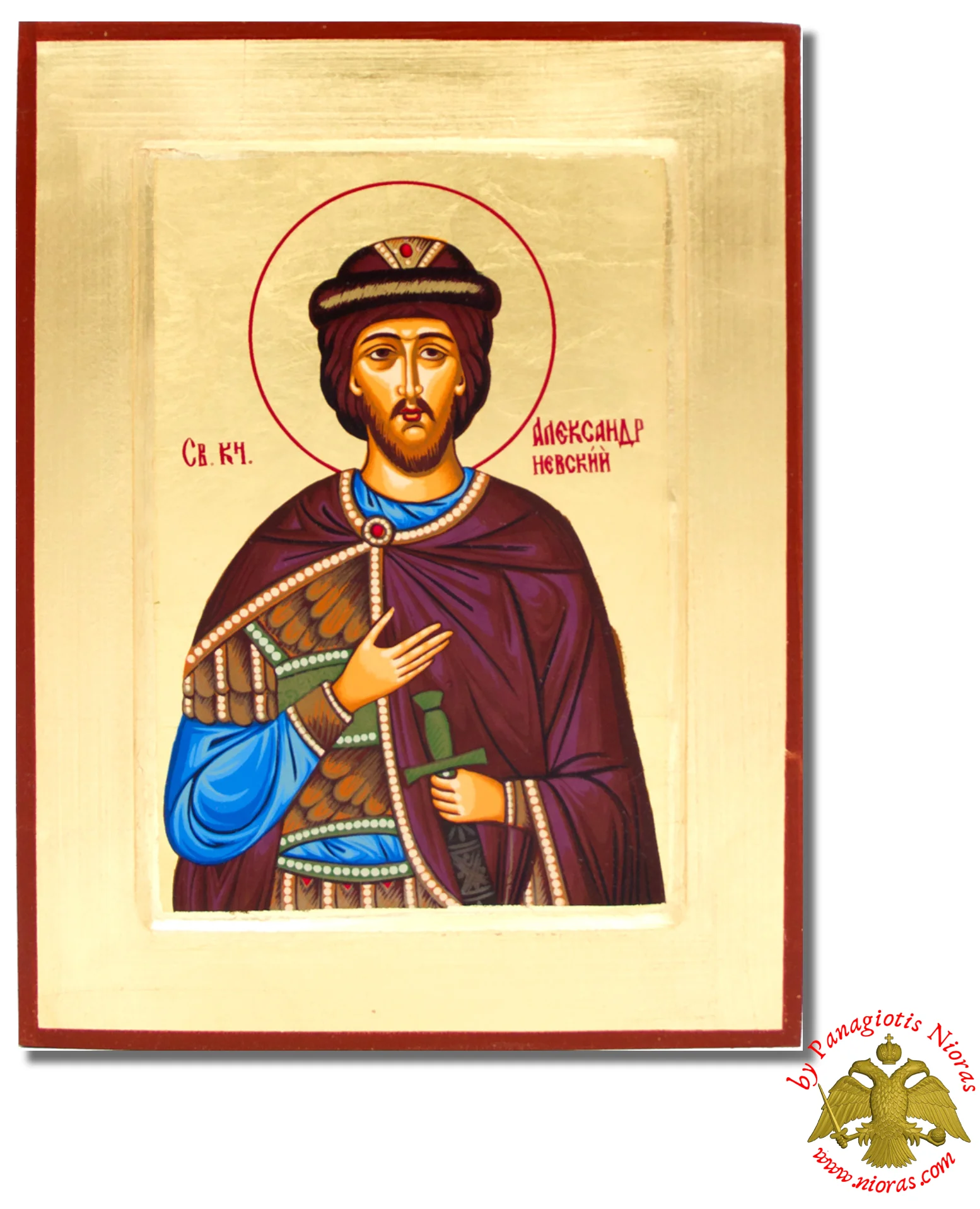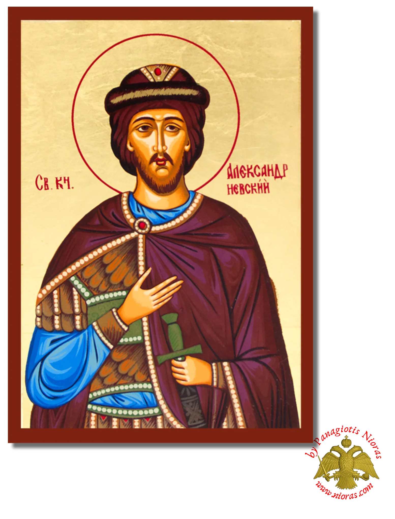 Χειροποίητη Ξύλινη Εικόνα Ο Άγιος Αλέξανδρος Νέφσκι Σε Καμβά.
