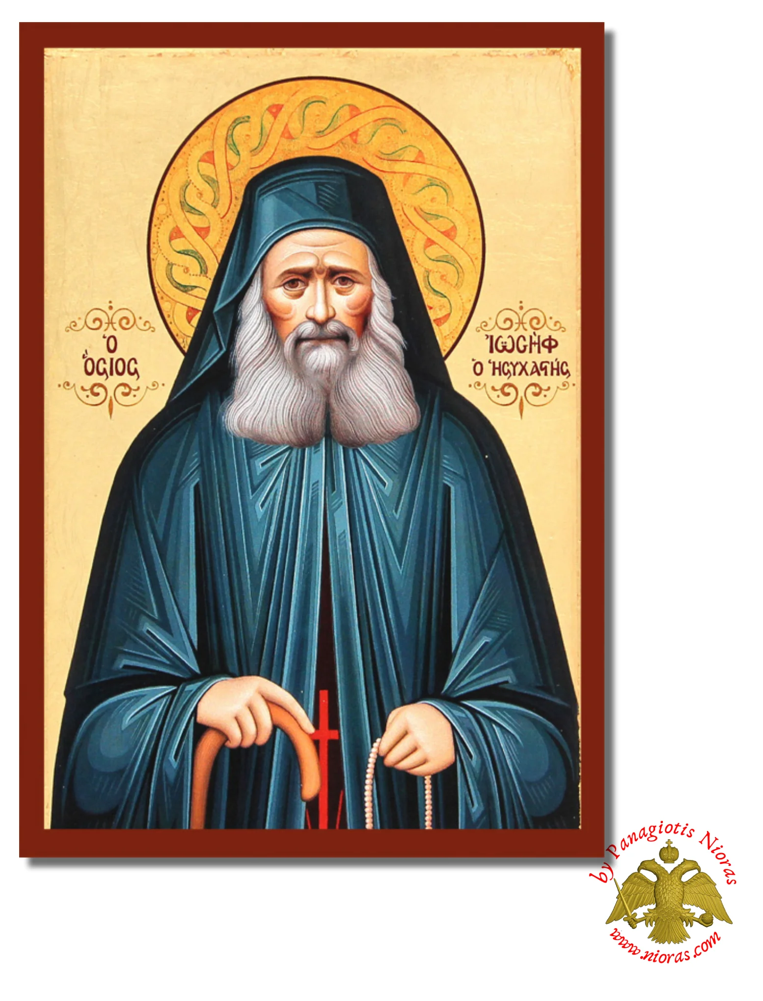 Χειροποίητη Ξύλινη Εικόνα Ο Άγιος Ιωσήφ ο Ησυχαστής Σε Καμβά.