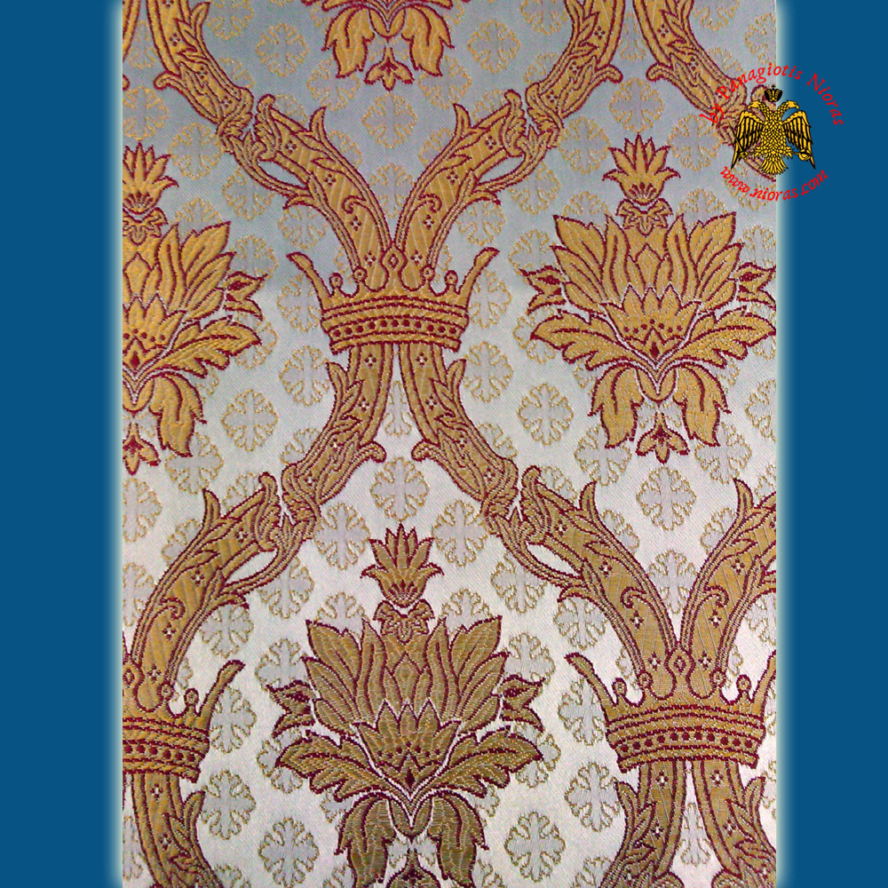 Χειροποιήτο ύφασμα για άμφια με σχέδια Εκκλησιαστικα. Το ύφασμα έχει χρώμα Λευκό με Κίτρινα – Χρυσα Σχέδια