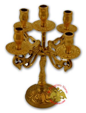 Παραδοσιακό Μπρούτζινο Πεντάκερο Κηροπήγιο με Παγόνια 15εκ
