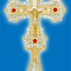Blessing Cross With stones handmade gold platted attached in a base with three small red stones.