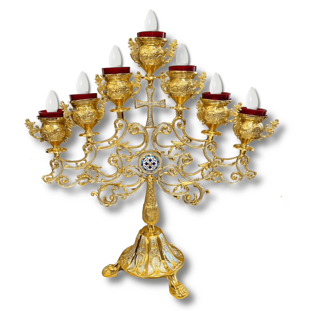 Orthodox Standing Vigil Oil Candle Lace Electric Brass GP