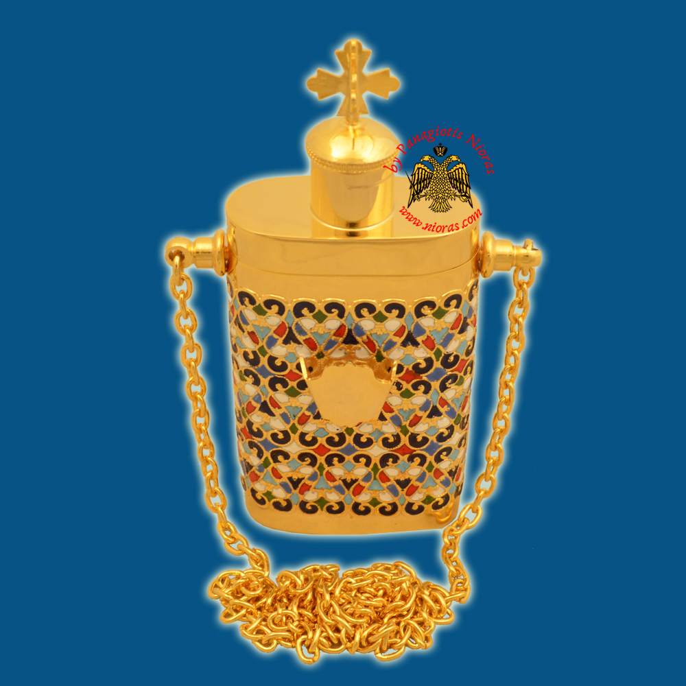 Anointing Oil Bottle gold-plated with enamel motifs Size: 14cm