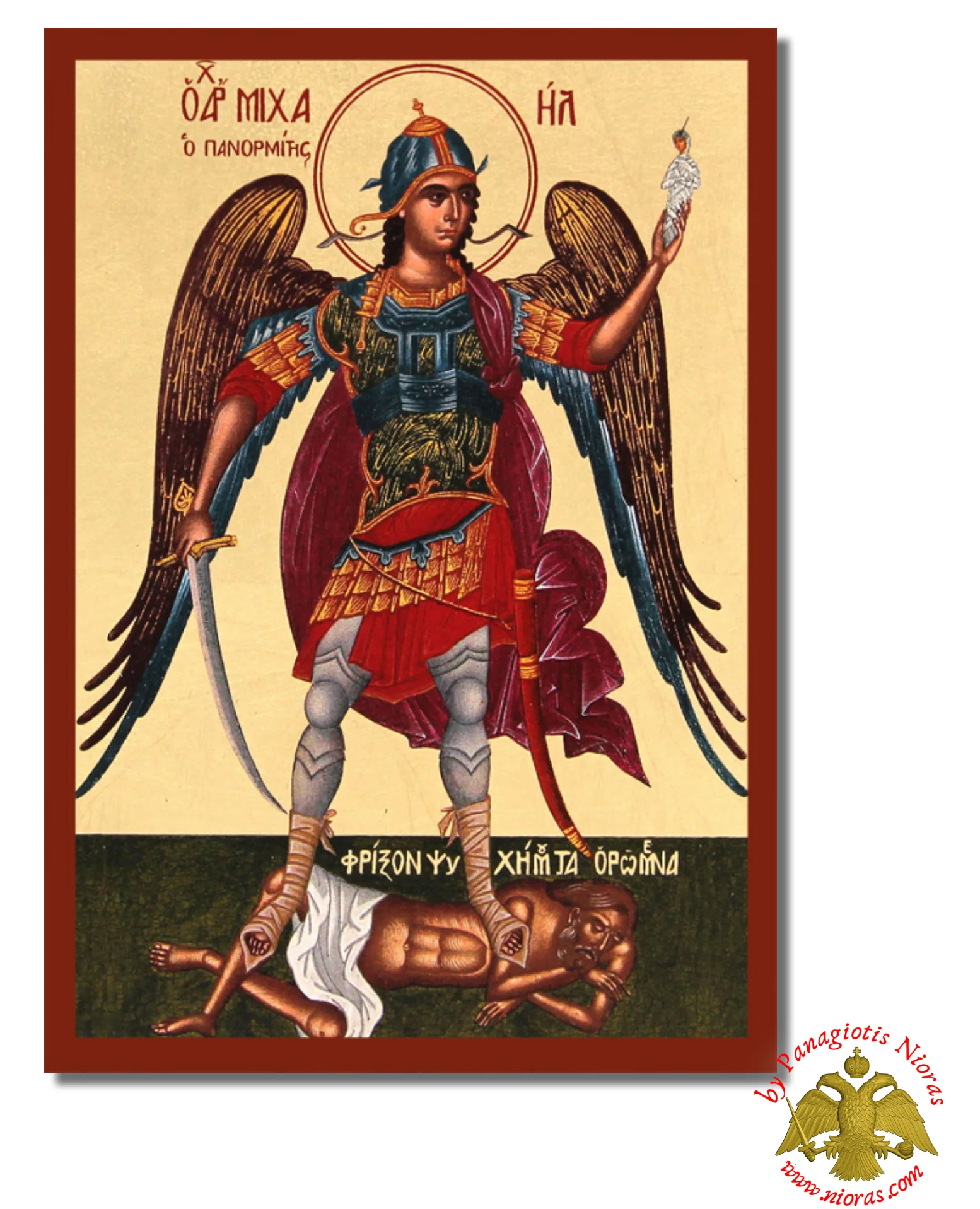 Hand Made Archon Michael the Panormite Byzantine Wooden Icon on Canvas.