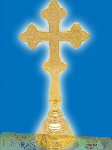Blessing Cross Inlined Double Sited handmade gold platted, with base.