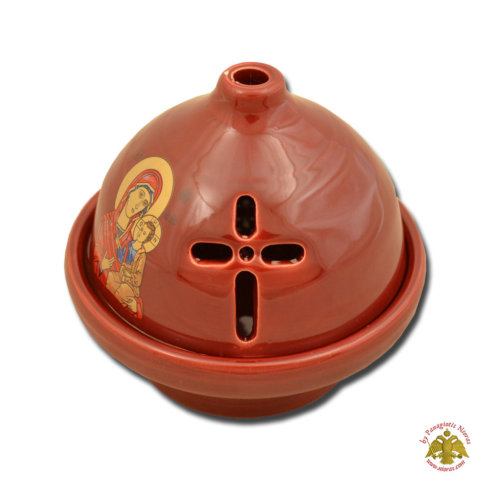 Ceramic Orthodox Theomitor Oil Candle Burqundy