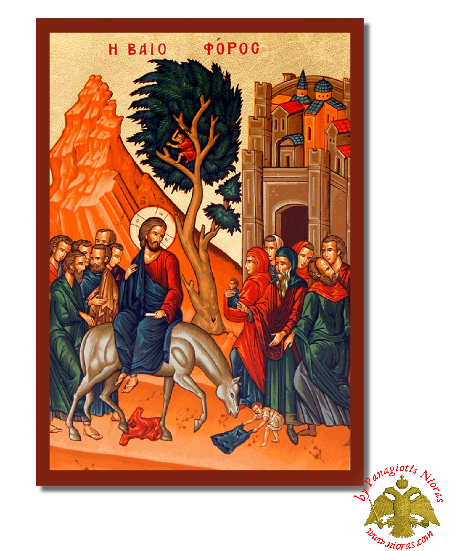 Handmade Wooden Icon Of The Entry Into Jerusalem On Canvas.