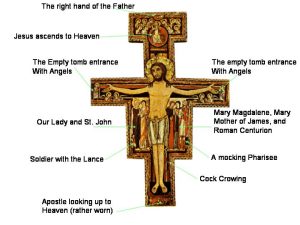 Franciscans cherish this cross as the symbol of their mission from God. The cross is of a type sometimes called an icon cross because besides the main figure it contains images of other saints and people related to the incident of Christ’s crucifixion