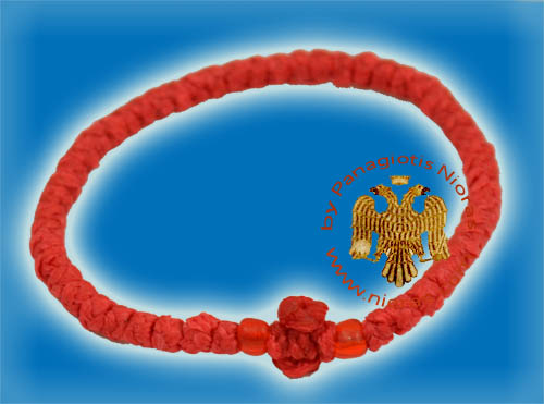 Hand made praying rope from Greek Monastery. Made from thin waxed cotton thread. With two beads and a cross.