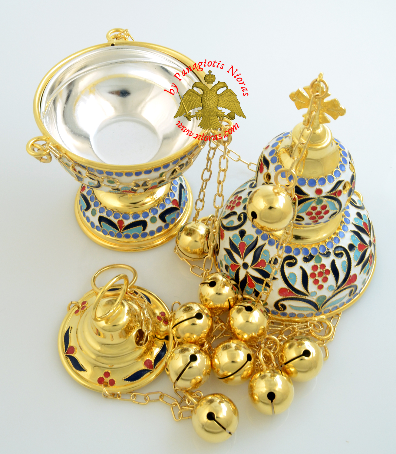 Russian Style Orthodox Church Censer Gold Plated with Enamels