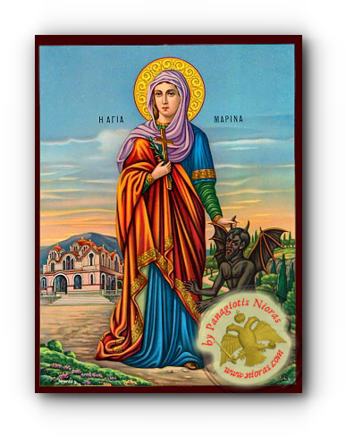 This Martyr lived during the reign of Claudius II (268-270). She was from Pisidia of Cilicia and was the only daughter of a certain priest of the idols. On being orphaned by her mother, she was handed over to a certain woman who instructed her in the Faith of Christ. When she was fifteen years old, she was apprehended by the ruler of Olmbrius, and when asked her name, homeland, and faith, she answered: “My name is Marina; I am the offspring of the Pisidia; I call upon the Name of my Lord Jesus Christ.” Because of this she endured bonds, imprisonment, and many whippings, and was finally beheaded in the year 270. Saint Marina is especially invoked for deliverance from demonic possession.