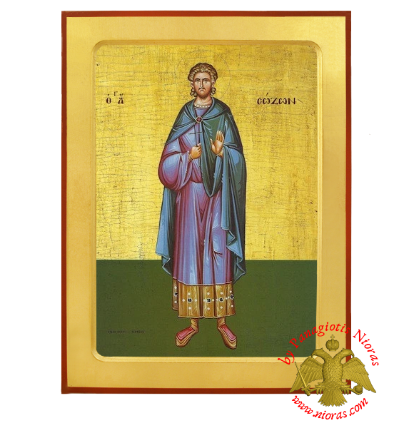 This holy Martyr was a shepherd in Lycaonia. Born a pagan, named Tarasius, he received holy Baptism and was renamed Sozon. Filled with zeal for the truth, he taught his countrymen to desist from the worshiop of idols. Once he entered the temple of Artemis in Pompeiopolis of Cilicia, cut off the golden hand of the idol, and breaking it in pieces, distributed it among the poor. When he saw that many were being unjustly punished for the theft, of his own accord he gave himself up to Maximian the Governor. He was beaten with rods until his bones were broken. According to some, he suffered martyrdom in 288; according to others, in 304