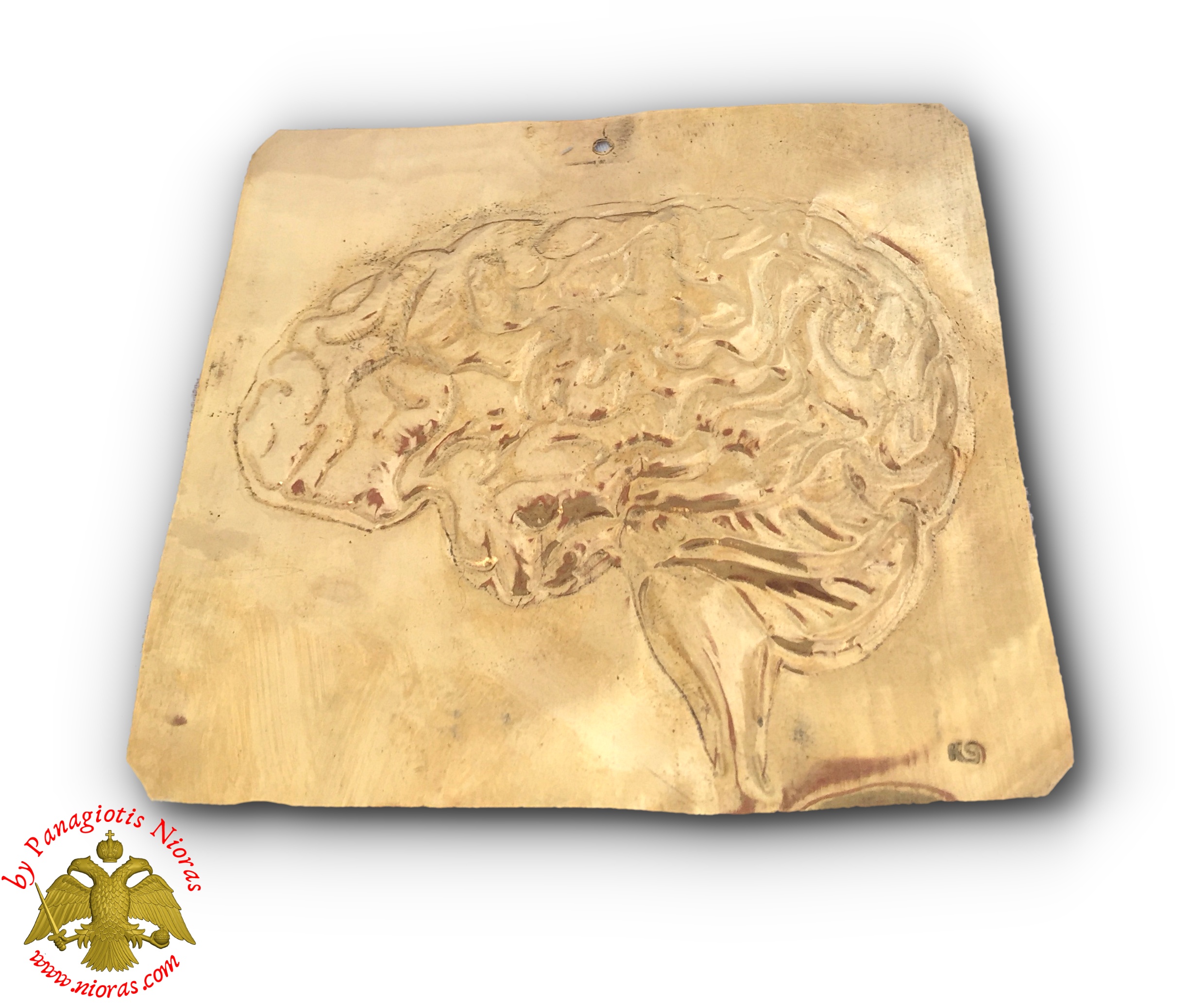 Gold votive tama 9k with human brain.