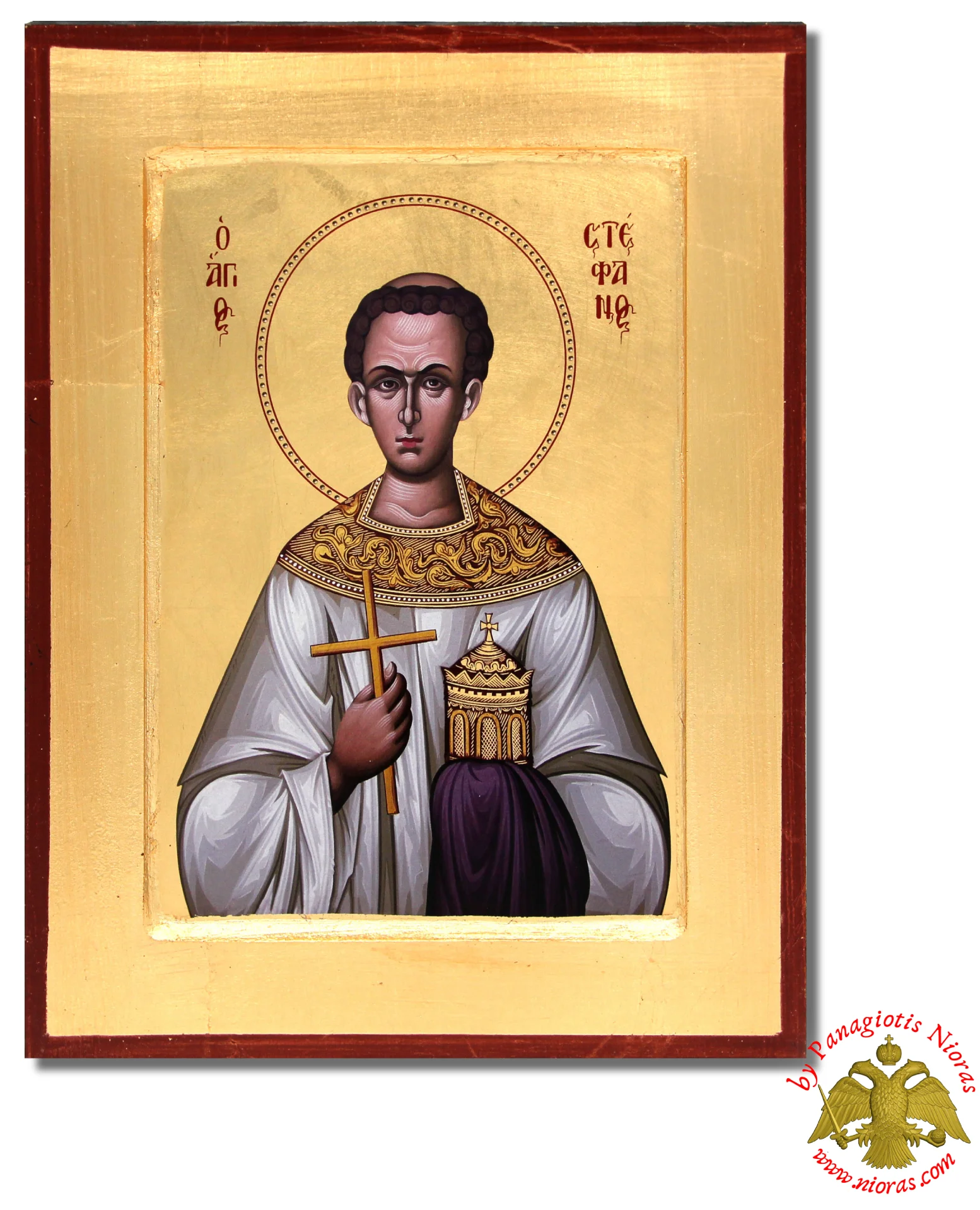 Hand Made The Saint Stephen Byzantine Wooden Icon on Canvas.